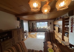 Dieses 1959 erbaute Wohnhaus wurde 1987 renoviert und das 1. Stockwerk mit Dachgeschoss neu aufgebaut. Auf der großzügigen Dachterrasse mit über 50 m² können Sie die Sonnentage genießen. Die Wohnfläche von ca. 140 m² verteilt sich auf Büro, 4 Zimmer, Wohnküche und Bad. Gas-Zentralheizung und Holzofenanschluss ist vorhanden. Für PKW, Fahrräder, Motorräder, Hänger usw.