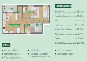 Nur Drei Einheiten befinden sich in diesem Haus, des Mitte der 90er Jahre in Eigentumswohnungen aufgeteilt wurde. Das Ursprungsbaujahr ist 1969. Die angebotene Wohnung ist ca. 90 m² groß und hat 4 Zimmer, Wohnküche, Bad und WC. Eine Garage und ein Kellerraum gehören zur Wohnung. Die Heizungsanlage (Gas-Zentralheizung) wurde erst vor wenigen Jahren erneuert.